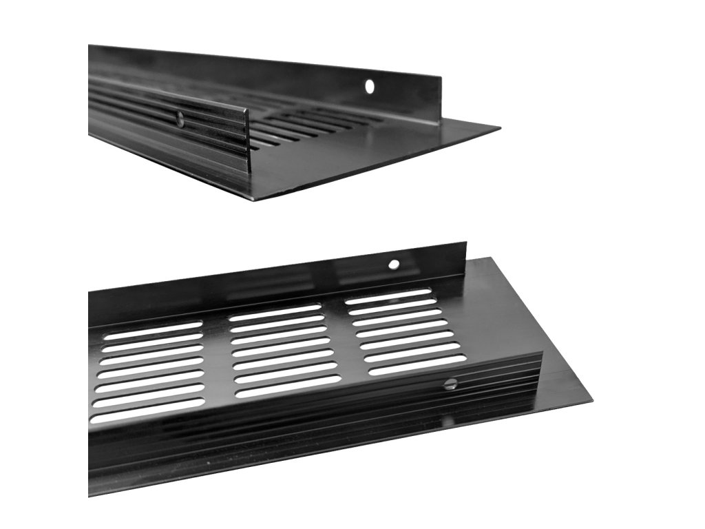 Hliníková odvětrávací mřížka vhodná jako propust nad topná tělesa či jako výdech klimatizace. Použít lze také jako průchodka do dveří pro odvětrání pracoven, spíží, kuchyní, sklepních a jiných prostor.