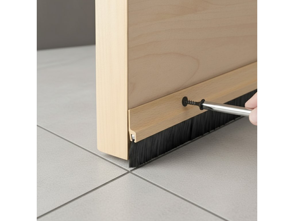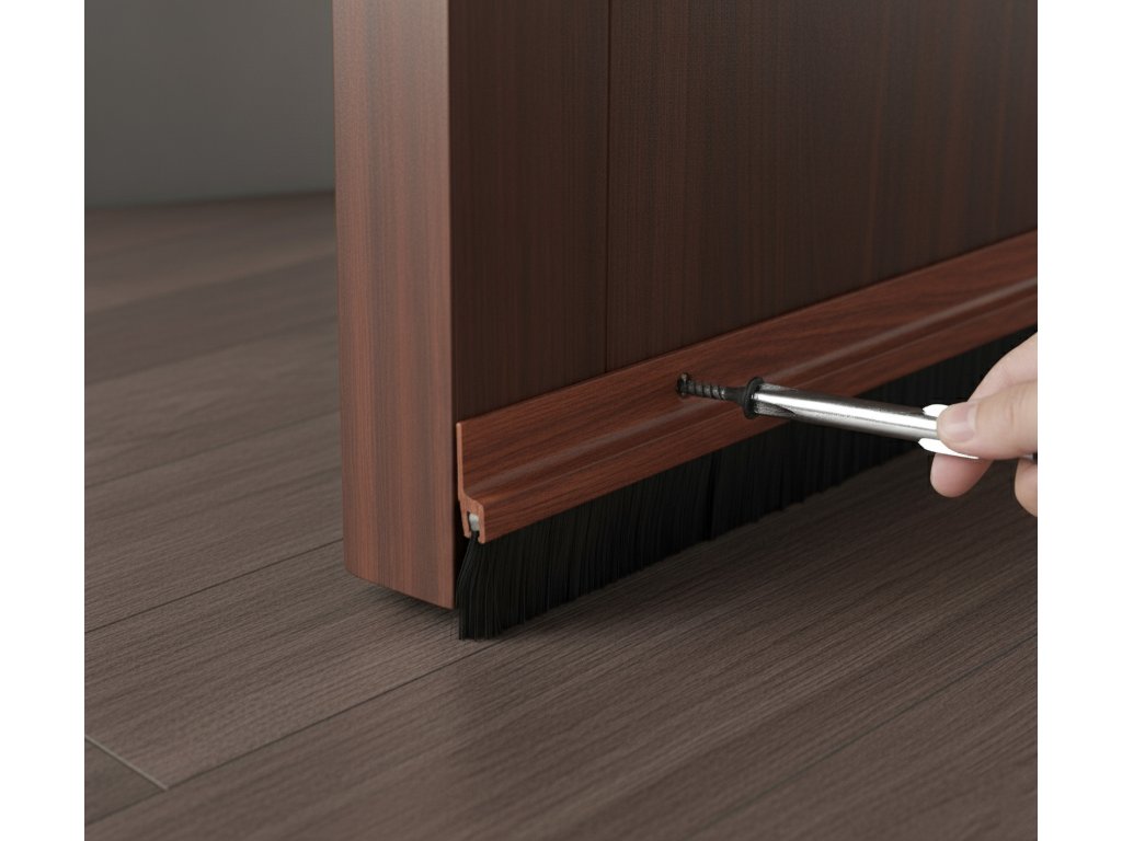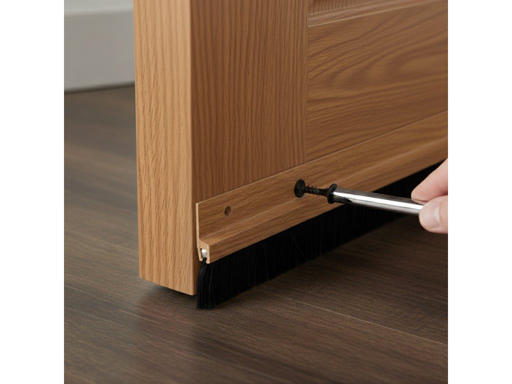 Plastová dveřní lišta v provedení s kartáčovým těsněním o délce jeden metr. Těsnění lze využít na všechny typy dveří. Délku těsnění lze snadno upravit podle šířky dveří (ustřihnutím). Všechny lišty lze je připevnit pomocí oboustranné lepící pásky, lišty určené k přišroubování mají již předvrtané otvory pro montáž. Podlahové lišty efektivně snižuje průnik prachu, nečistot a drobného hmyzu pod dveřmi.