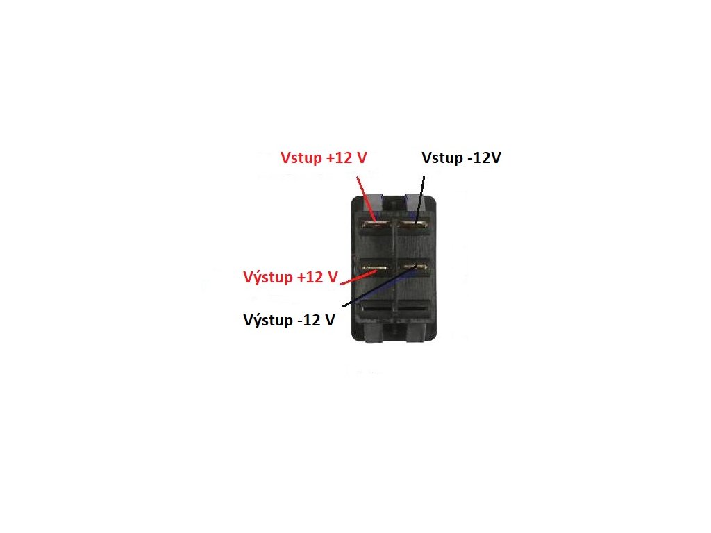 Přepínač pro spínání světel. Provedení je s červeným nebo zeleným LED indikováním stavu ON, určeno pro vozy s napětím 12 V.