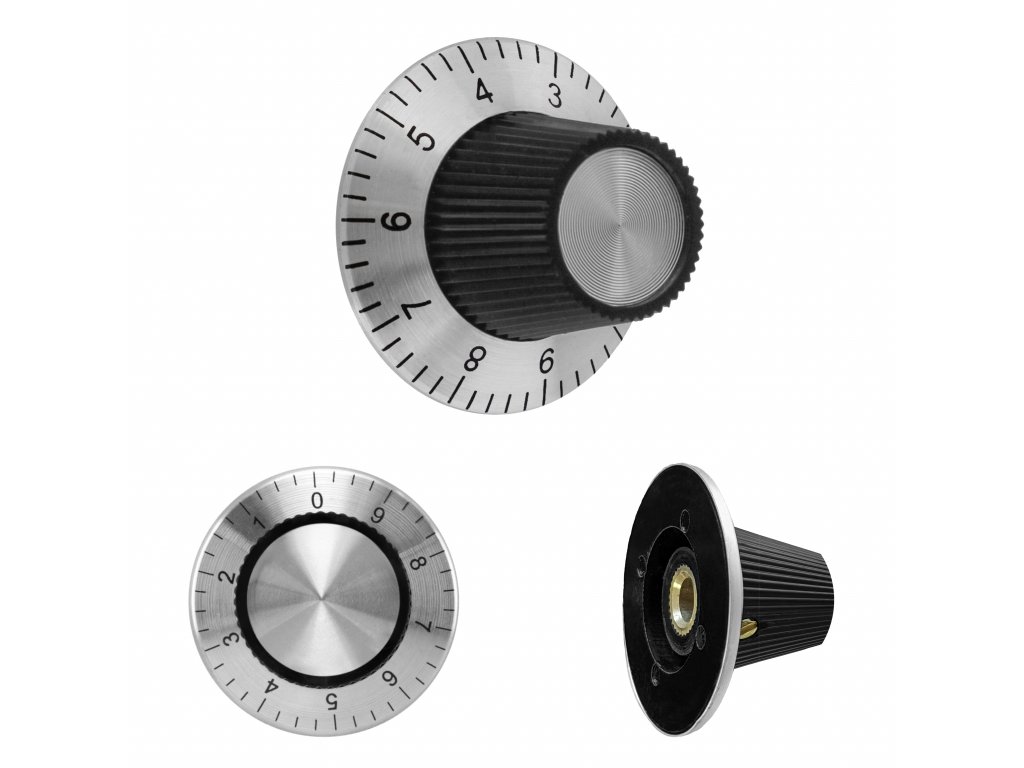 Nasouvací přístrojový knoflík "knob" na potenciometr s hřídelí o Ø 6 mm.