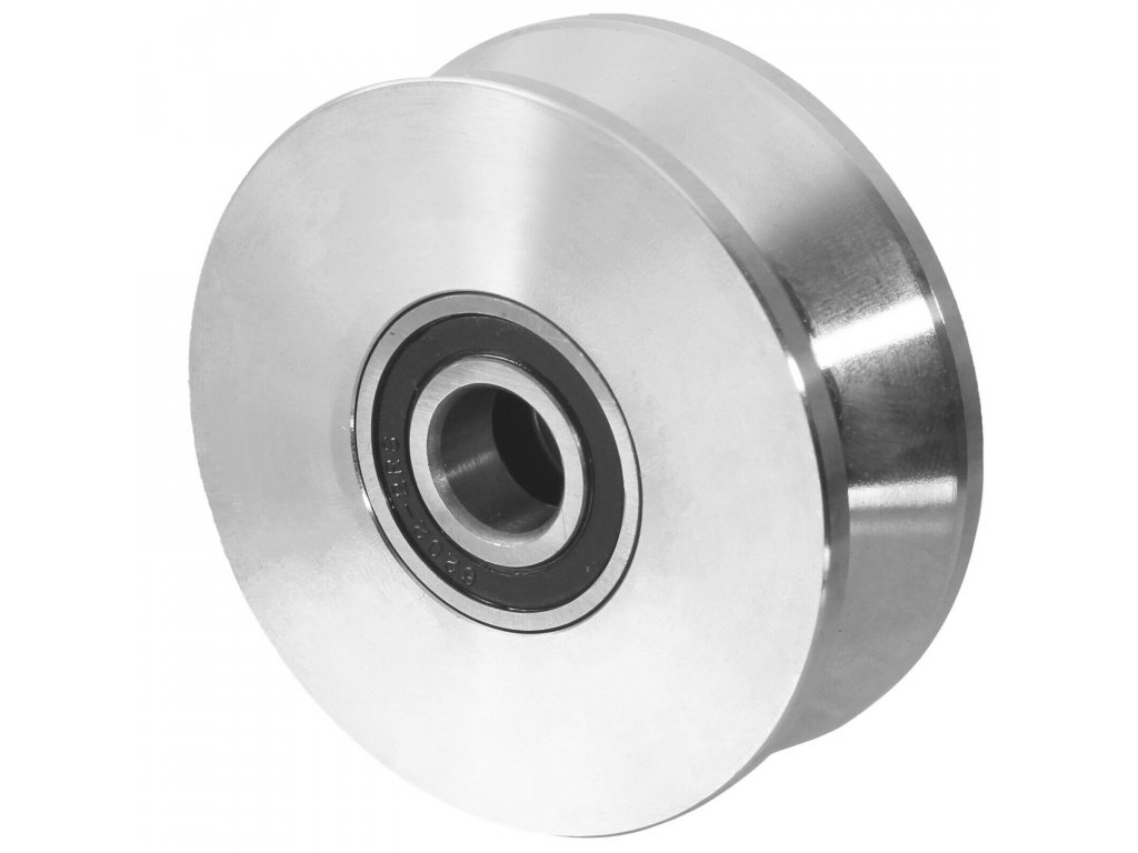 Pojezdová kladka s dvojitým kuličkovým ložiskem vyrobena z nerezové oceli V4A o průměru 50 / 60 / 70 / 80 mm s V drážkou pro těžké kolejnicové brány.