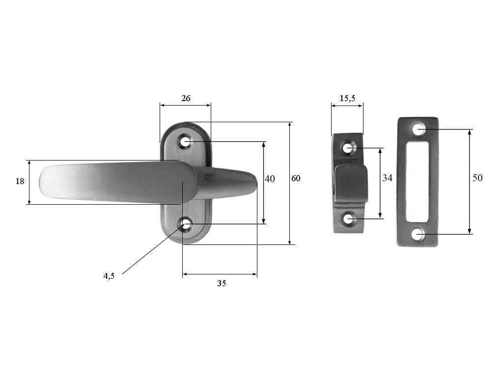 Ocelová okenní / dveřní západka - masivní