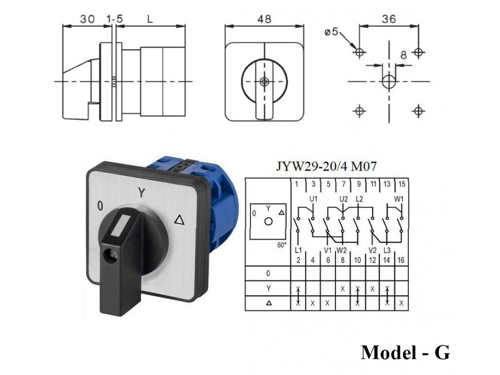 Otočný vačkový spínač pro rozběh motorů hvězda trojúhelník Model 0-Y-△.