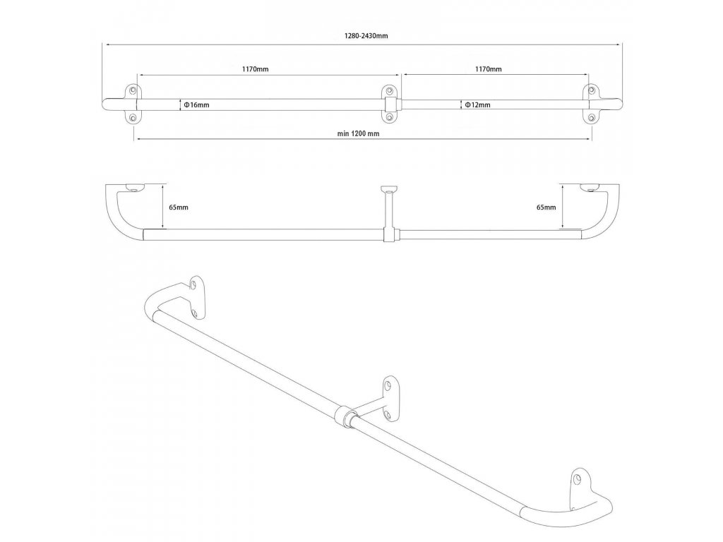 Nastavitelná šířka: 128 - 243 cm (vč. uchycení)